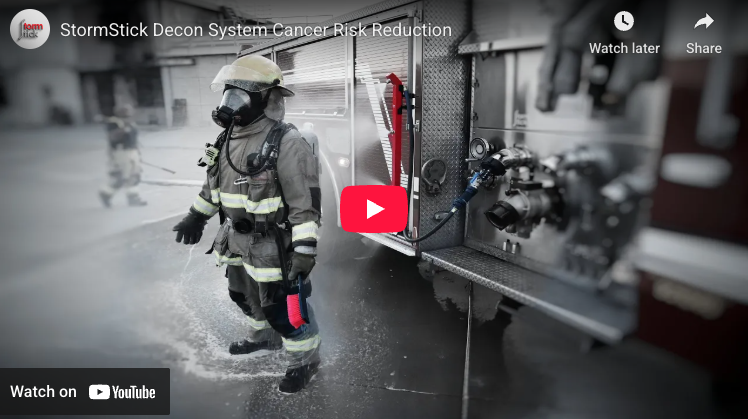 StormStick systems attach directly to firetrucks and provide a fast way for firefighters to rinse off dangerous carcinogens immediately after a fire, reducing exposure before turnout gear is removed.